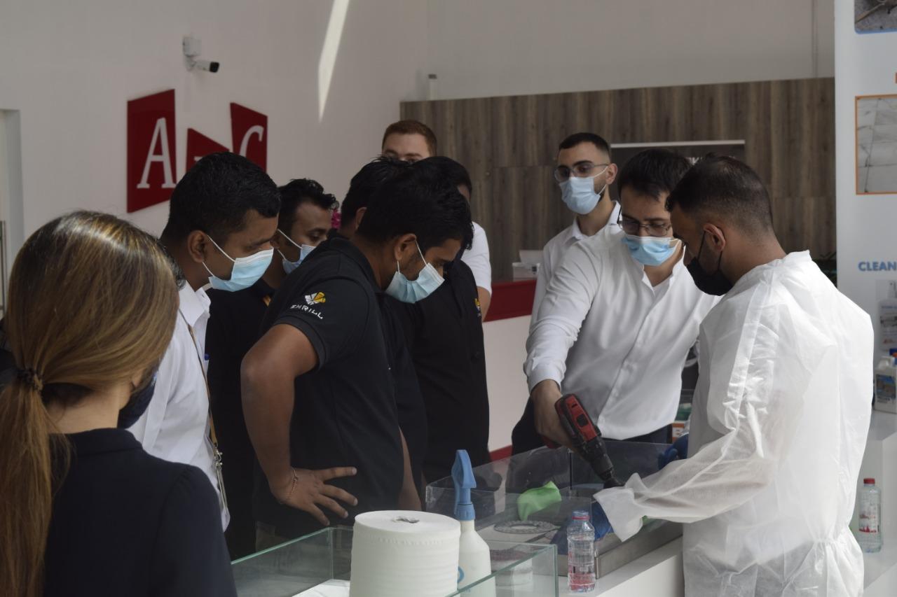 On the 29th of June, AKC’s team pridefully hosted our longtime customers and business associates which operate on a wide scale in the facility management industry. The team had the honor to host Emrill Services LLC, along with Farnek Services LLC, and was excited to guide them through the delightful seminar, and the expressive technical demonstration of our newly acquired technology, which compromises of the LMA Grinding Machines, mainly aimed at stone care restorative innovations.